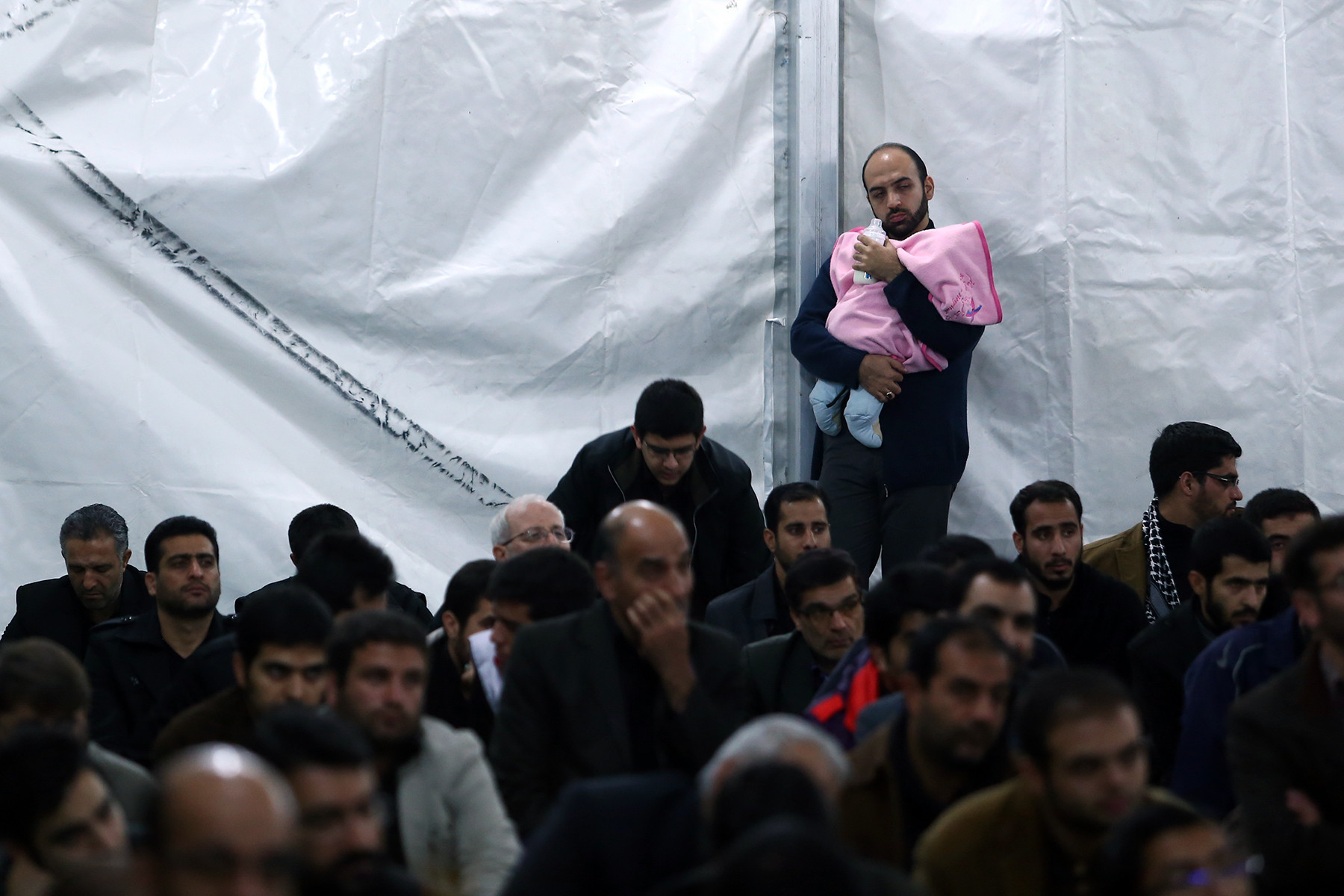 کسایی که توی پارکینگ هستند؛ تصویر استاد رو دارند... اما مایی که توی حسینیه بودیم و جلو نشسته بودیم؛ بخاطر زاویهء بد و مزاحمت پرده و ستون... استاد رو ندیدیم... دیگه فرقی نبود بین منی که از حدود 10 صبح رفتم که در محضر باشم... و اونی که حدود ساعت یک اومده...