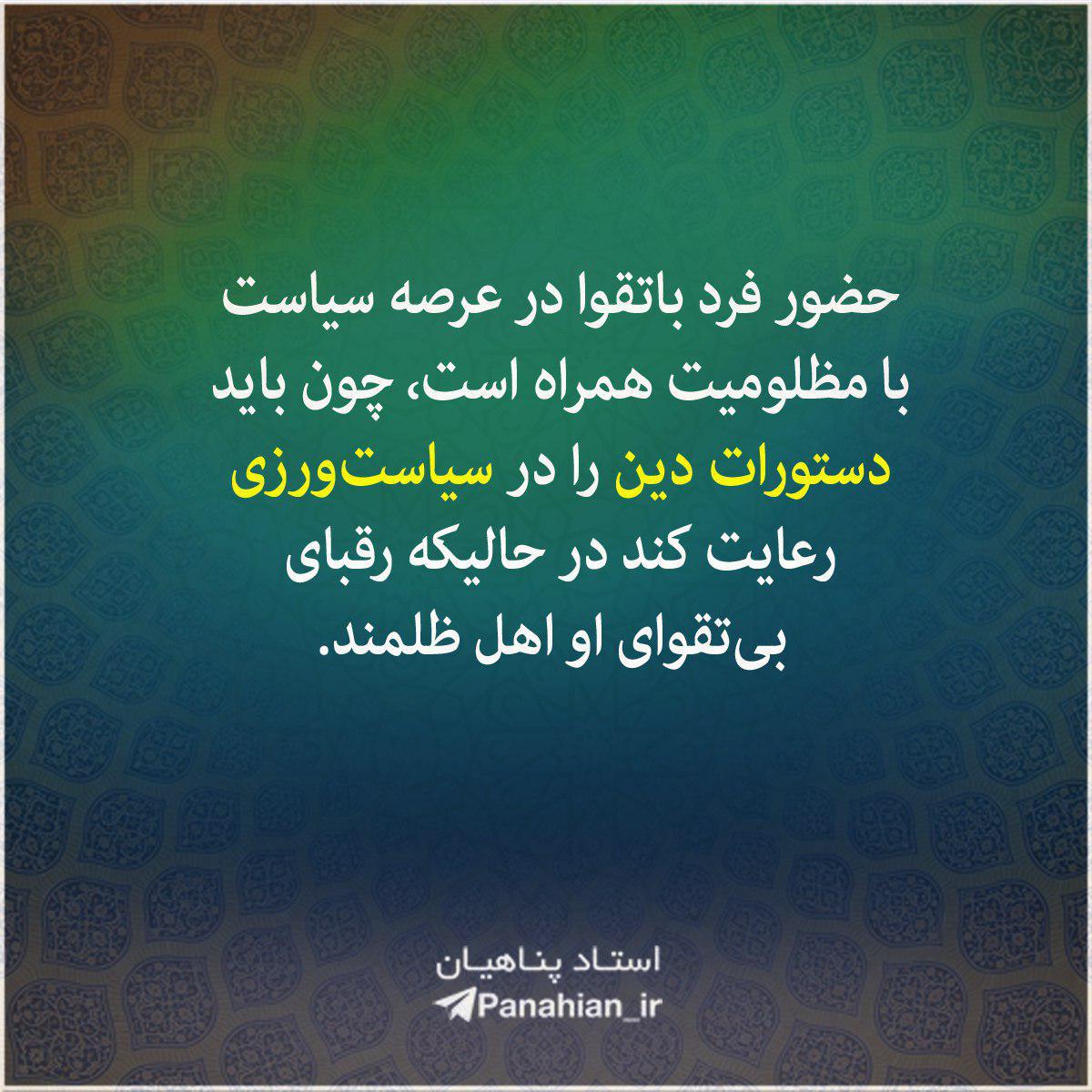 حضور فرد باتقوا در عرصه سیاست با مظلومیت همراه است، چون باید دستورات دین را در سیاستورزی رعایت کند در حالیکه رقبای بیتقوای او اهل ظلمند.