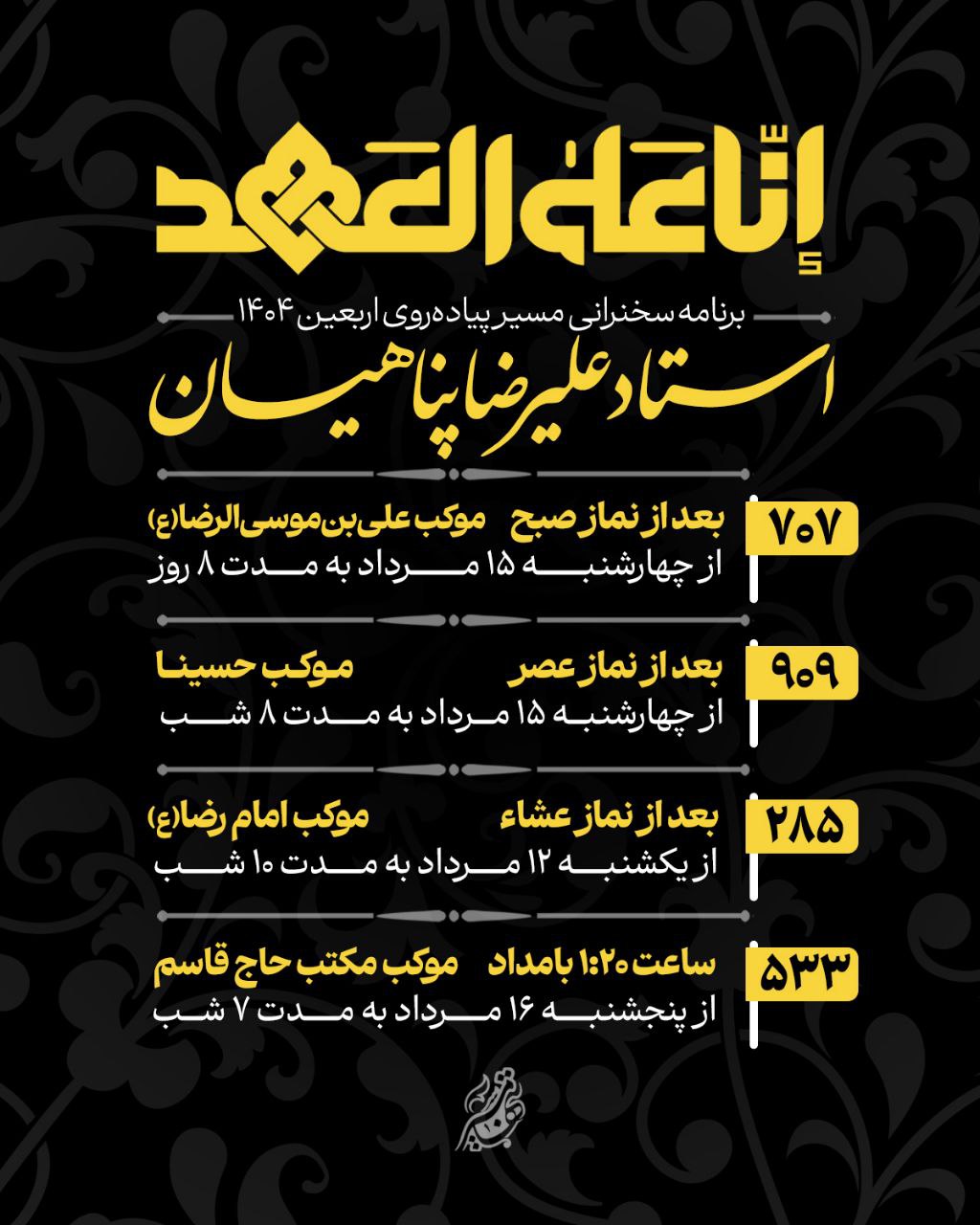 برنامۀ سخنرانی استاد علیرضا پناهیان در پیادهروی اربعین ۱۴۰۴