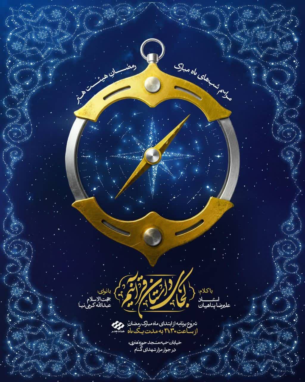 از ابتدای ماه رمضان | حوالی ۲۱:۳۰خ سمیه، مسجد حوزه هنری(هیئت هنر)در جوار مزار شهدای گمنام